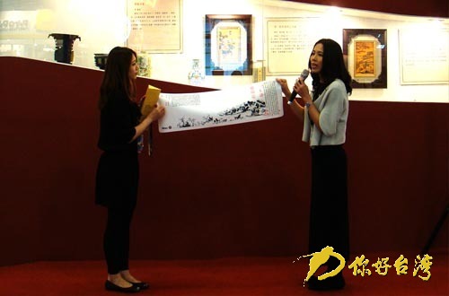 出席今天(21日)新闻发布会的台北故宫副院长冯明珠在接受采访时说:“你看今天都是《富春山居图》,因为《富春山居图》山水合壁这个展览6月2日就要开展,所以理论上所有的商品到现在这个时候就应该做到位了,大家都是崭新的设计,所以他们的产品就都拿出来了。”