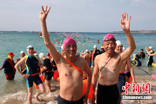 这是福州冬泳协会继2009年9月组织683人参加“日月潭国际万人泳渡嘉年华”后,连续3次组织大型团队,总人数超过1000人赴台参加海峡两岸民间体育交流盛事。(杨婀娜)