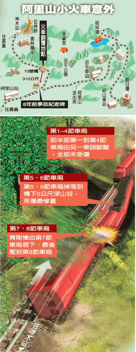 阿里山小火车事故示意图。图片来源:台湾《联合报》