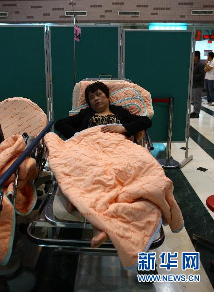 4月27日,一位在阿里山火车事故中受轻伤的浙江游客在台湾嘉义市的圣玛尔定医院接受治疗。 新华社记者 龚兵 摄