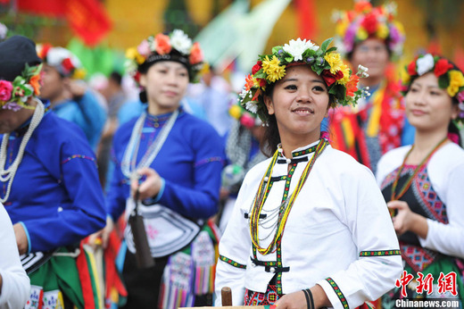 4月30日,2011中国昆明国际文化旅游节昆明狂欢节在春城昆明开幕。来自宝岛台湾的原住民族原舞者表演队精彩亮相,受到游客的喜爱。中新社发 刘冉阳 摄