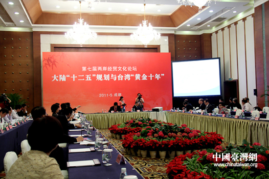 第七届两岸经贸文化论坛7日在成都举行,图为两岸学者在“大陆‘十二五’规划与台湾‘黄金十年’” 专题研讨会现场(中国台湾网 李徽 摄)