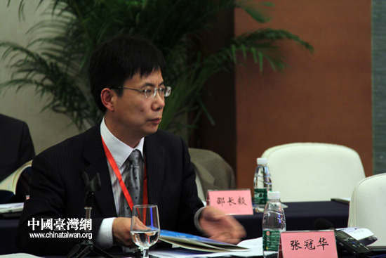 第七届两岸经贸文化论坛7日在成都举行,图为中国社科院台研所副所长张冠华在“大陆‘十二五’规划与台湾‘黄金十年’” 专题研讨会现场(中国台湾网 李徽 摄)