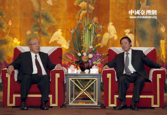5月8日下午,中共四川省委书记刘奇葆在成都会见中国国民党荣誉主席吴伯雄和参加第七届两岸经贸文化论坛的部分台湾代表。 (中国台湾网 田云鹏 摄)