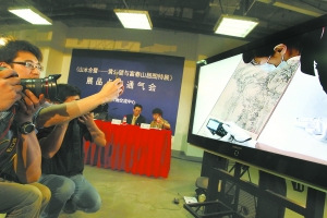 媒体记者观看《剩山图》点验的全过程视频直播。记者 饶强摄