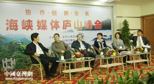 中国台湾网5月25日庐山消息 第三届海峡媒体(庐山)峰会24日举行,在下午举行的分项讨论中,两岸二十余位媒体人,围绕着两岸媒体交流的感性和理性、两岸媒体所共同面对的挑战和机遇等各抒己见,展开了充分交流。