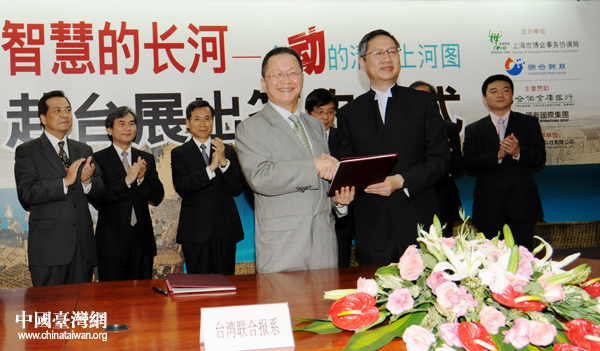 中国台湾网5月31日上海消息 2010年上海世博会中国馆的电子动态版《清明上河图》赴台展出签约仪式5月28日在上海世博局举行。上海世博局副局长黄健之与台湾联合报系经济日报社社长杨仁烽分别在协议书上签字。根据协议,201O年上海世博会中国馆电子动态版《清明上河图》将于7月1日至9月4日在台北花博会的争艳馆展出。