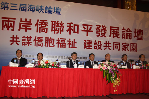 本次和平发展论坛由中华全国归国华侨联合会和台湾侨联总会共同主办。论坛期间,两岸侨界学者分别就“十二五规划”与海西经济发展和EFCA与两岸合作交流等议题进行发言。据悉,下午,两岸侨界嘉宾还将就两岸经济发展论坛和闽南文化论坛两个主题论坛进行深入讨论和交流。