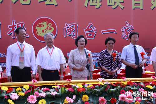 海峡百姓论坛开幕,全国政协副主席、台盟中央主席林文漪,福建省政协副主席张燮飞,台湾劳动党主席吴荣元等嘉宾为闽台宗亲族谱对接活动揭幕(中国台湾网 于斯文 摄)