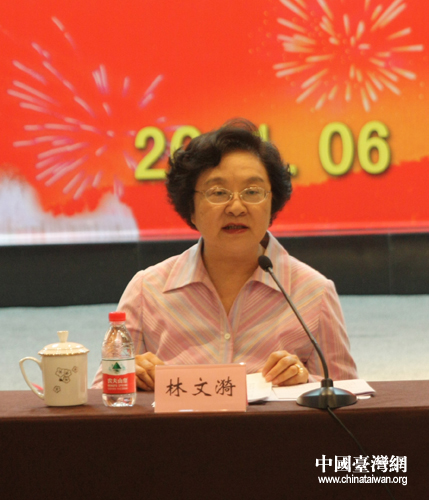 全国政协副主席、台盟中央主席林文漪出席座谈会并讲话。(中国台湾网 王怡然 摄)