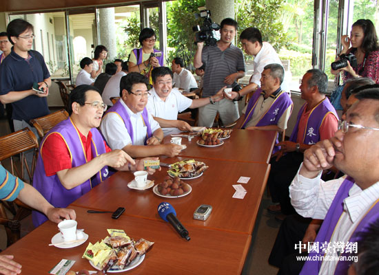 河北省委副书记付志方26日率团来到台南县东山乡,与这里种植咖啡豆的农民进行交流。(摄影 中国台湾网 陈宁)
