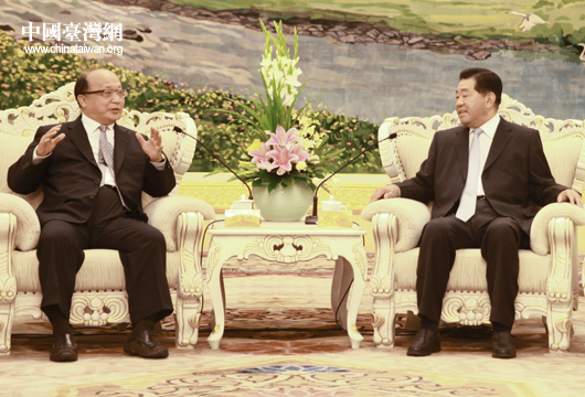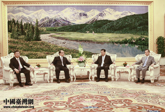 7日下午,中共中央政治局常委、全国政协主席贾庆林在人民大会堂会见来京参访的台湾台中市市长胡志强一行。(中国台湾网 陈佳慧 摄)