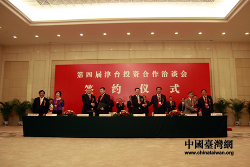 中国台湾网7月7日消息 今天上午,第四届津台投资合作洽谈会项目签约仪式在天津市梅江会展中心举行。此次共签订台商投资项目23个,签约投资总额153.96亿元人民币,签订银商合作授信1个,额度为30亿元人民币。