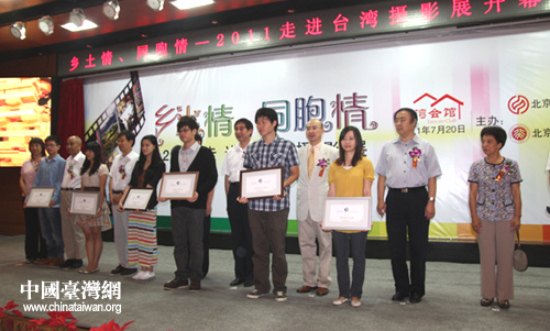 2011年7月20日,“乡土情 同胞情—2011走进台湾摄影展” 揭幕剪彩仪式上,获奖的六位台湾同学取得了证书。(中国台湾网 杨永青 摄)