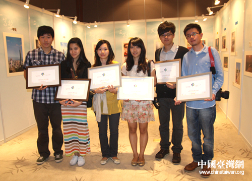 获奖的六位台湾同学手持证书合影留念(中国台湾网 杨永青 摄)