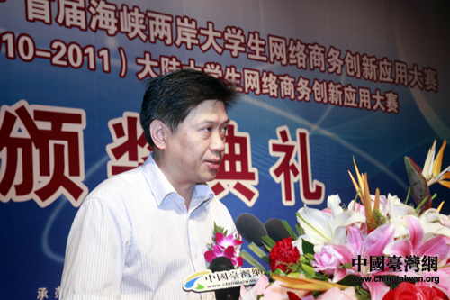 中国台湾网7月28日北京消息 7月28日,由中国互联网协会和中国台湾网共同主办,中国建设银行主协办的建行“e路通”杯首届海峡两岸大学生网络商务创新应用大赛暨第四届大陆大学生网络商务创新应用大赛大陆赛区总决赛颁奖典礼在北京交通大学隆重举行。国新办网络新闻协调局副局长方楠在致辞中表示,两岸大学生加强交流与协作,将共同引领和推动网络商务应用的创新与发展。