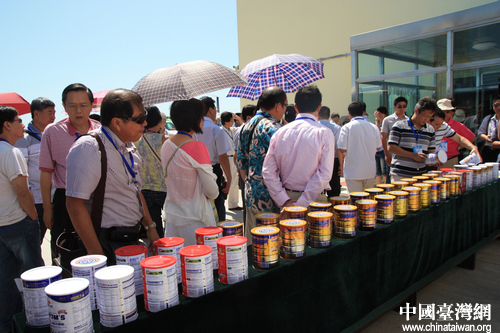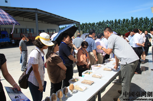 台商们正在参观富裕县饲料工厂,听取工作人员详细介绍。(中国台湾网 芮益芳 摄)