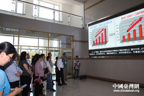 海外台商来到富裕县工业园区,工作人员向他们详细介绍了园区的建设规划和发展思路。(中国台湾网 芮益芳 摄)