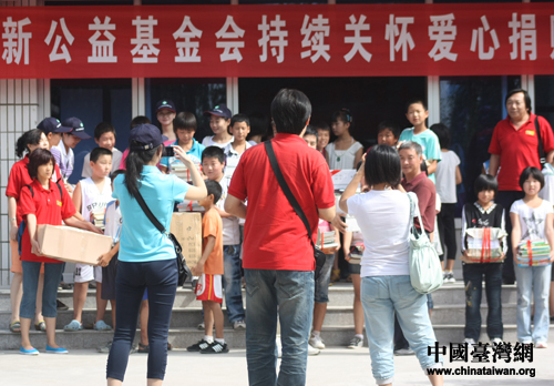 中国台湾网8月19日北京消息 顶新公益基金会“持续关怀”爱心捐赠图书仪式今(19)日上午在天津蓟县下营镇中营小学举行。仪式结束后,顶新公益基金会的志愿者们和学校师生一起清扫教室迎接新学期的到来。