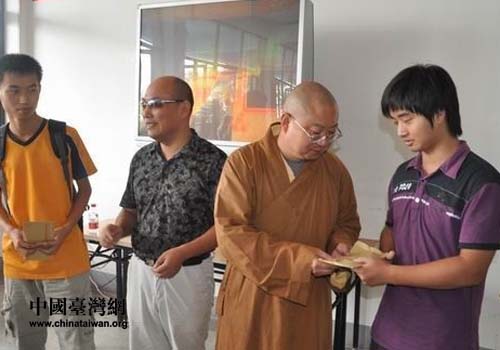慈云助学中心为贫困学生发助学金。(图片来源:黄石市台办)