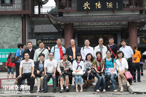 第八届海峡两岸媒体湖南联合采访团成员在湖南张家界武陵源景区合影留念。(中国台湾网网 王怡然 摄)