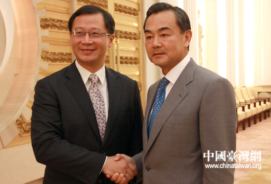 中国台湾网9月15日北京消息 15日下午,中共中央台办、国务院台办主任王毅在北京人民大会堂会见了台湾桃园县县长吴志扬一行。(中国台湾网 田云鹏 摄)