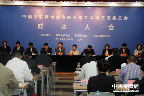 中国互联网协会海峡两岸互联网交流委员会19日下午在北京成立。来自大陆互联网业界的59家成员单位出席了仪式。(中国台湾网 王伟 摄)