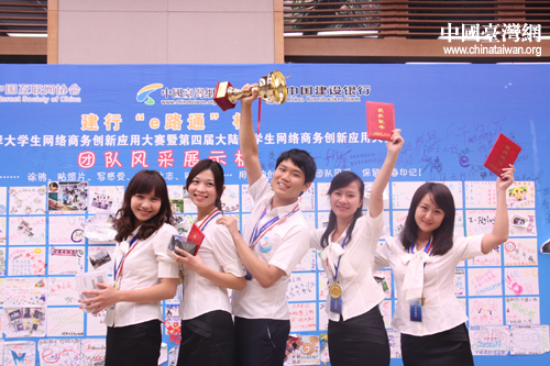中国台湾网9月20日北京消息 建行“e路通”杯首届海峡两岸大学生网络商务创新应用大赛两岸总决赛颁奖典礼今日在北京举行。来自两岸23所高校共23支队伍获奖,其中4支台湾高校队伍的成绩名列前茅。来自西安邮电学院的“随风E起冲”团队凭借出色的表现,继夺取大陆赛区首魁后,越战越勇,再夺两岸赛区冠军。