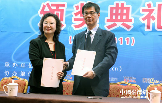 在活动现场,中国台湾网总经理总编辑刘晓辉与台湾亚洲大学副校长邓成连教授签订了2012海峡两岸大学生网络商务创新应用大赛合作意向书。该意向书旨在促进两岸大学生交流与互相了解,深化两岸青年对大陆与台湾商业环境、文化环境的认识,把握“海峡两岸经济合作框架协议”(ECFA)签署后为两岸带来的机遇与挑战,推动两岸互联网及其商务应用(电子商务)的发展与合作,并促进两岸大学生的社会实践与商业创新实践,提升职业能力与就业力。(记者 李丹)