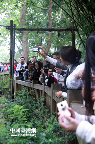 台湾记者争拍熊猫。(中国台湾网 马迪 摄)