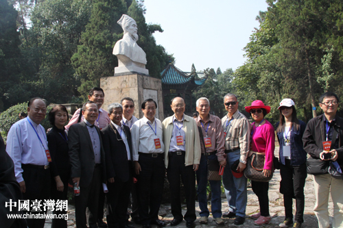 100多位两岸专家学者与产业界人士,8日来到湖北黄冈祭拜李时珍,图为祭拜后台湾嘉宾在医圣墓前合影。(中国台湾网 杨丽 摄)