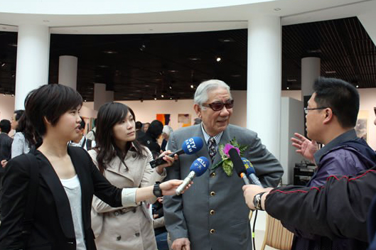 台湾金宝山集团总裁曹日章在月湖美术馆接受采访(资料图片)