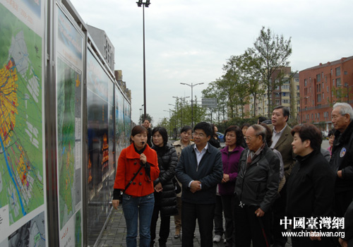 考察团一行在认真地听讲解员讲解相关情况(图片来源:上海市台联)
