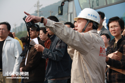 协力科技产业园的工作人员正在向记者们介绍园区的规划和建设。(中国台湾网 王君飞 摄)