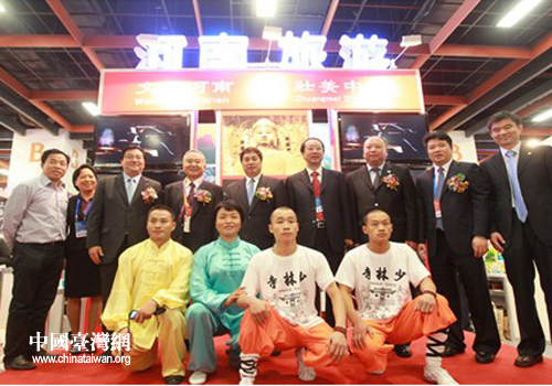 中国台湾网11月18日郑州消息 日前,河南省郑州市旅游局党组书记龙同胜带领黄河风景名胜区、中原国旅、中州国旅等旅游企事业单位负责人及少林武僧文武学校武术队赴台北市,参加第六届海峡两岸台北旅展。