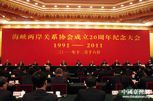 海峡两岸关系协会成立20周年纪念大会16日下午在北京人民大会堂举行。(中国台湾网 王伟 摄)