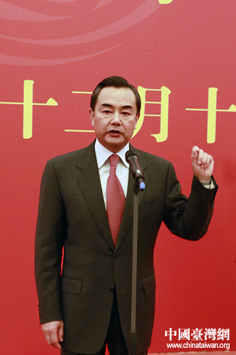 12月16日,纪念海峡两岸关系协会成立20周年招待酒会在北京人民大会堂举行。图为中共中央台办、国务院台办主任王毅在招待酒会上致辞。(中国台湾网 王伟 摄)