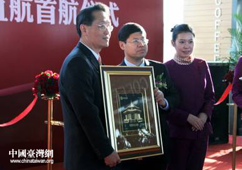 中国台湾网12月19日沈阳消息 日前,台湾立荣—长荣航空开通沈阳—台北航线。辽宁省机场管理集团公司于沈阳桃仙国际机场举办欢迎仪式及首航仪式。