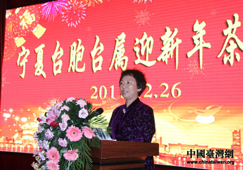 中国台湾网12月28日银川消息 日前,宁夏台胞台属迎新春茶话会在银川举行,在宁夏的台胞台属和台商代表近百人欢聚一堂,畅叙亲情,喜迎新年。宁夏回族自治区党委常委、秘书长蔡国英,宁夏回族自治区人大常委会副主任马秀芬等出席了茶话会。