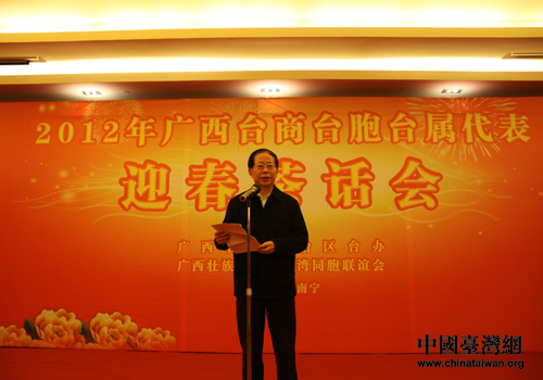 中国台湾网1月6日南宁消息 1月5日,2012年广西台商台胞台属代表迎春茶话会在南宁举行。自治区领导和有关部门负责人与全区100多位台商台胞台属台生代表欢聚一堂,共叙亲情友情,喜迎新春。