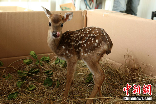 记者12日从山东威海刘公岛国家森林公园管理处获悉,台湾赠送大陆的梅花鹿“点点”所生鹿宝宝“晶晶”已成功断奶,身体状况良好。