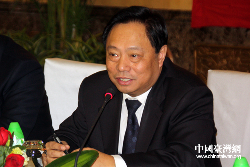 全国人大常委会委员、全国台联会长梁国扬在广州举行的座谈会上。(中国台湾网 杨丽 摄)