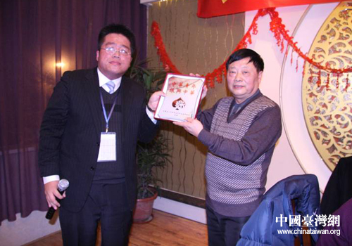 四川省人大常委会副主任、民革四川省委主委王宇坤(右一)在成都会见了来川参访的台湾“杰青团”一行。图为参访团团长陈长风(左一)向王宇坤副主任赠送纪念牌。(图片来源:民革四川省委)
