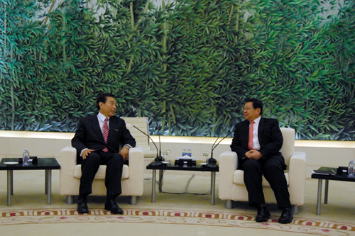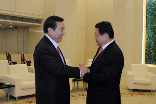 日前,商务部部长陈德铭会见台北世贸中心董事长王志刚一行,双方就两岸产业合作、推动大陆赴台投资和采购、ECFA后续协商等事宜深入交换了意见。图片来源:商务部网站
