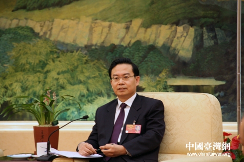 十一届全国人大五次会议期间,福建代表团于6日下午向媒体开放,图为全国人大代表、福建省省长苏树林回答记者关于平潭开发开放的问题。(中国台湾网 杨丽 摄)