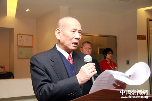 3月8日,黄埔军校同学会在京举办两会代表、委员联谊招待会,黄埔军校同学会会长林上元在招待会上致辞。(中国台湾网 王伟 摄)