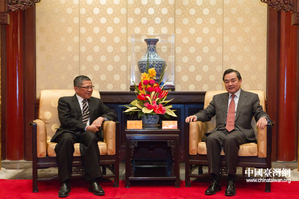 3月9日,中共中央台办、国务院台办主任王毅在京会见了以林炳坤为团长的台湾无党团结联盟参访团一行 (中国台湾网发 邓鸿伟 摄)
