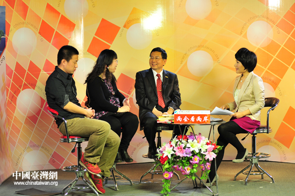 台湾海峡两岸观光旅游协会(台旅会)北京办事处主任杨瑞宗、中央人民广播电台记者陈雅萍、个人游背包客汪振14日做客中国台湾网两会特别节目,畅谈赴台个人游(中国台湾网 于斯文 摄)