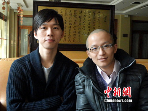 北京中医药大学2010届硕士研究生蔡明亨(左)和2009届硕士研究生邹易良(右)。图片来源:中国新闻网 郭思远 摄
