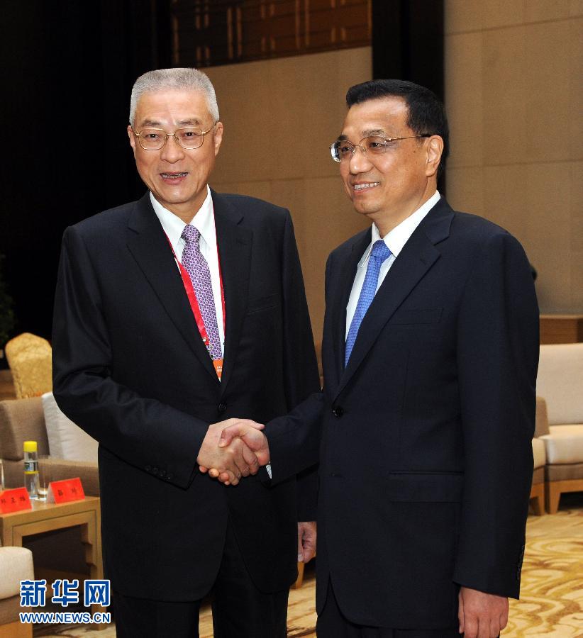 李克强副总理1日9时15分在海南博鳌会见由吴敦义率领、出席博鳌亚洲论坛2012年年会的台湾两岸共同市场基金会代表团。